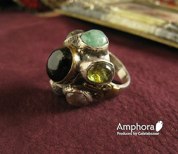 トプカプ宮殿の輝きを今に伝えるオットマン・アンティークデザインビックストーンリング【sm15-17】 価格: 28,000円 レビュー評価:0.0 レビュー数:0 オットマン・アンティークデザイン一覧へラッピングのお申し込みは、ご注文の途中の画面からお申し込みいただけます。(有料300円)ギフトカードをお付けいたしますので、メッセージがありましたら、備考欄にお書き添えくださいね。⇒ラッピングイメージ(新しいウインドウ)オットマン・アンティークデザインビックストーンリングサイズ:リング直径1.8cm(15号程度)トップ 2.5×2cm素 材:シルバー、クォーツ各色製 作:トルコ・イスタンブール大きなトップに思わず見入ってしまうゴージャスなビックストーンリング。中央の黒っぽく見える石は、深いダークグリーン。周囲には、ペリドット、ローズクォーツ、トパーズ、ブル Supported by 楽天ウェブサービス |